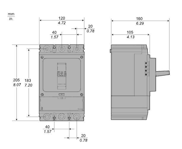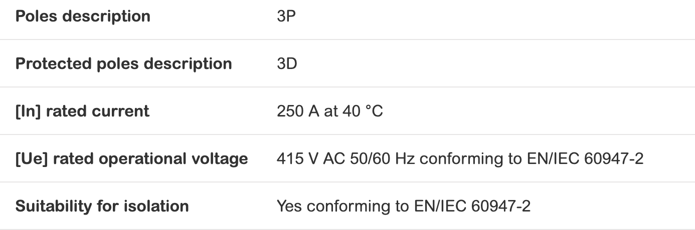 400A 차단기 프레임과 열 자기 트립 장치 (TMD)로 만들어진 완전한 3 폴 회로 차단기입니다. MCCB는 기본 애플리케이션에 대한 가격이 우수한 비율이 우수하며 애플리케이션에 대한 신뢰할 수있는 전기 보호 기능을 제공합니다. 브레이킹 용량 (ICU)은 415VAC 50/60Hz에서 36KA RMS입니다. 작동 전압은 415VAC 50/60Hz입니다. 이 제품은 250A 등급 (IN) 열 자극 트립 장치 (TMD)를 포함합니다. 이 TMD 트립 장치는 0.7xin ~ 1xin (175a-250a)의 설정 범위를 갖는 조정 가능한 열 보호 IR (오버로드에 대한)을 제공합니다. 또한 12xin (3000a)으로 설정된 고정 자기 (단락에 대한) 보호 기능을 제공합니다. MCCB에는 선택하고 설치하기에 간단한 다양한 옵션 액세서리가 제공됩니다. 제품 치수는 120mm (너비) x 205mm (높이) x 105mm (깊이)입니다. 무게는 3.5kg입니다.