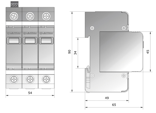 EN 60715 당 35mm DIN 레일에 빠르고 깨끗한 설치를 위해 설계된이 장치는 54mm의 레일 공간을 차지하며 밀도가 높은 제어 캐비닛 및 개조 프로젝트의 경우에만 사용됩니다. IP20의 보호도 (IEC/EN 60529)는 컴팩트 함을 유지하면서 패널 작업 중에 운영자를 보호하는 데 도움이됩니다.